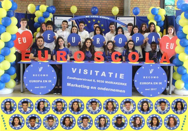 BECOMO staat voor ‘bedrijfseconomie in de derde graad Marketing en Ondernemen (MO)’. De rode draad vormt het digitaal platform CourseSites: niet alleen een leidraad voor alle leerstof, maar ook voor alle bedrijfseconomische projecten. De oranje banner verwijst naar het 5e jaar, de blauwe banner naar het 6e. Onder de noemer ‘Europa en ik’ komt binnen dit digitaal leerplatform de EU als vakoverschrijdende eindterm nu ook al jaren aan bod in de 3e graad MO. Niet alleen theoretisch, maar ook via allerlei projecten zoals workshops, bezoeken aan Europese instellingen en deelname aan wedstrijden.