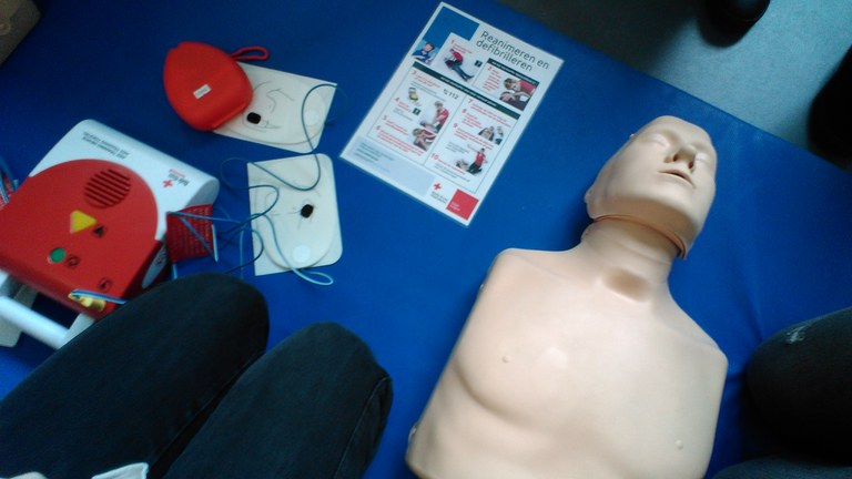 Deze week vond alvast een oefenles plaats. Reanimeren en defibrilleren, verbandtechnieken en zelfs ‘echte’ simulaties stonden op het programma.