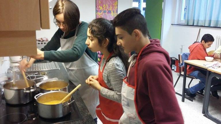 In een mum van tijd ontpopten ze zich tot echte koks die met plezier en veel schwung wortelen, uien, tomaten en pompoenen tot kleine stukjes versneden. De versnipperde groenten verwerkten ze nadien samen met een mix aan kruiden tot een heerlijk dampende soep. En het mag gezegd: het was hemels lekker!