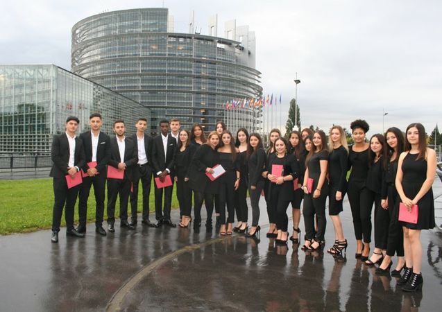 Onze leerlingen hebben er een Europese ervaring bij: zij mochten vergaderen in de imposante plenaire vergaderzaal in Straatsburg én zij konden spreken met jongeren van verschillende nationaliteiten ... Wat Europa ongetwijfeld een beetje dichter bij hen bracht.