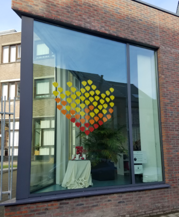 Enkele klasgroepen werkten rond welzijn in deze coronaperiode. Elke leerling schreef een paar bemoedigende woorden op een vlam. Met de vele kleine vlammetjes maakten we één grote vlam. Op die manier geven we graag aan dat we er zijn voor jou, voor elkaar en voor de hele buurt.