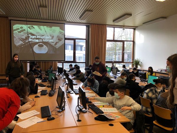 Onze leerlingen van 1A namen vandaag – op 22-02-2022! – deel aan een leesproject en werden 'echte journalisten'. Ze bekeken verschillende artikels met een kritisch oog om er nadien zelf te schrijven. Na het schrijven van een eigen artikel maakten ze nog extra opdrachten die bij een krant horen zoals: kruiswoordraadsels, cartoons, het weerbericht ... Als kers op de taart namen enkele leerlingen interviews af.