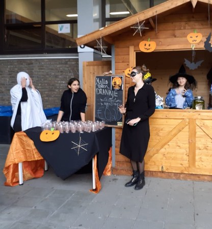 De dag voor de herfstvakantie zat de sfeer er goed in dankzij de leerlingenraad. Zij organiseerden een heus halloweenfeestje!