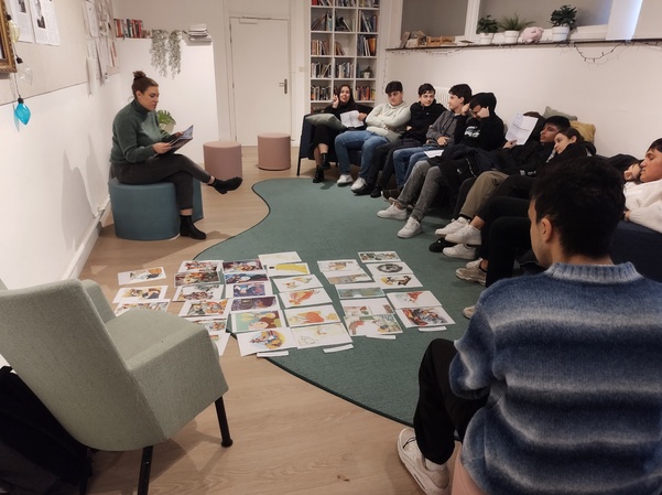 Leraren vertelden en lazen verhalen voor de leerlingen maar de leerlingen lazen ook voor aan elkaar. Tijdens de middagpauze kwam er zelfs een mama voorlezen in het Arabisch. Gezellig toch?