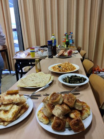 Om de week af te sluiten organiseerden ze samen met de leraren een etentje. Bijna iedereen kroop achter het fornuis en bracht een typisch gerecht mee uit zijn of haar cultuur. Van hapje tot dessert, het werd een groot en heerlijk buffet. Een mooie afsluiter van het eerste trimester.